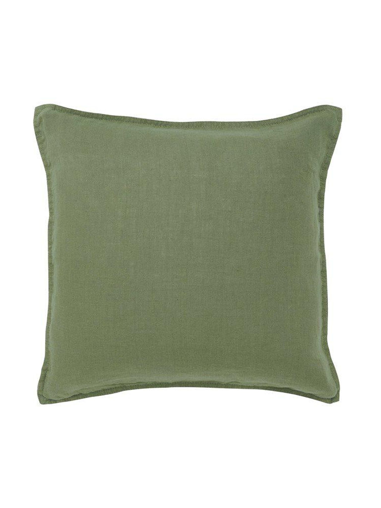 Grönt lätt tumlat linnekuddfodral 45x45cm från Svanefors i linne med dragkedja och jeanssöm, certifierat STANDARD 100 by OEKO-TEX®.