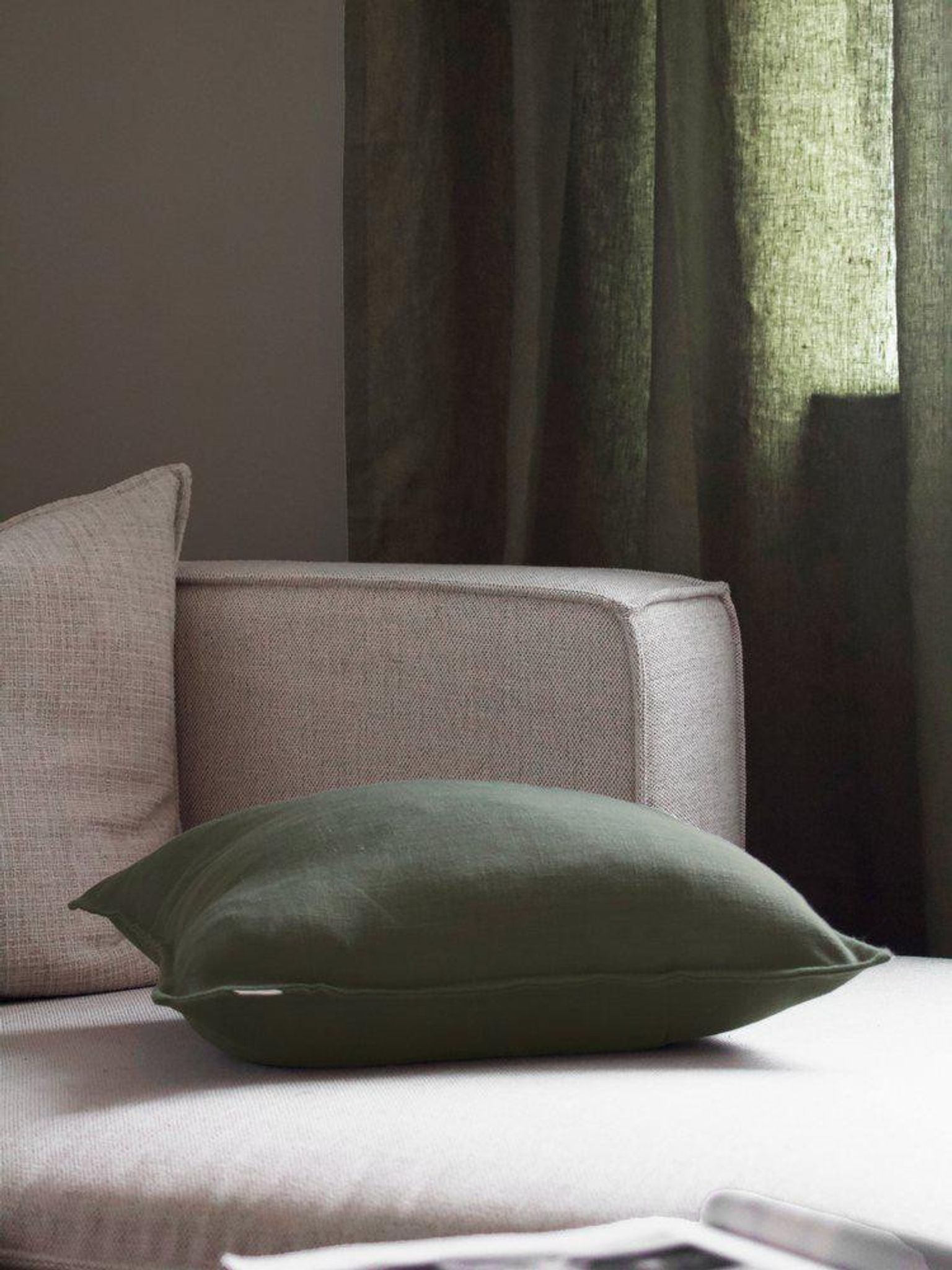 Detta grön lätt tumlat linnekuddfodral är ett snyggt kuddfodral för din soffa, säng eller fåtölj. Materialet och den rustika känslan ger din inredning mer textur och gör det lättare att skapa en ombonad, inbjudande yta i vardagsrummet eller sovrummet.