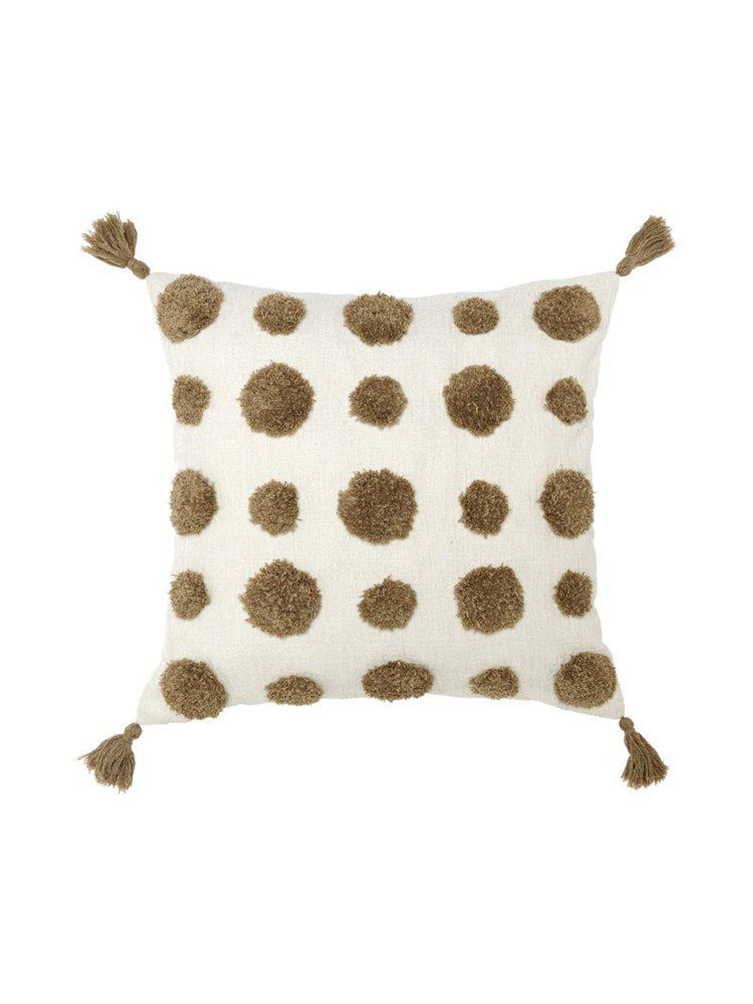 Storleken är 45x45 cm och passar standard innerkuddar (innerkudde säljs separat). Färgen är mocca/brun och materialet är 100% polyester (PES). Det tuftade ytskiktet och tofsarna ger en omedelbar känsla av värme och textur, samtidigt som dragkedjan gör det smidigt att byta eller tvätta fodralet. Produkten passar både moderna och mer rustika hemstilar och gör det enkelt för dig att förnya din inredning utan större insatser.