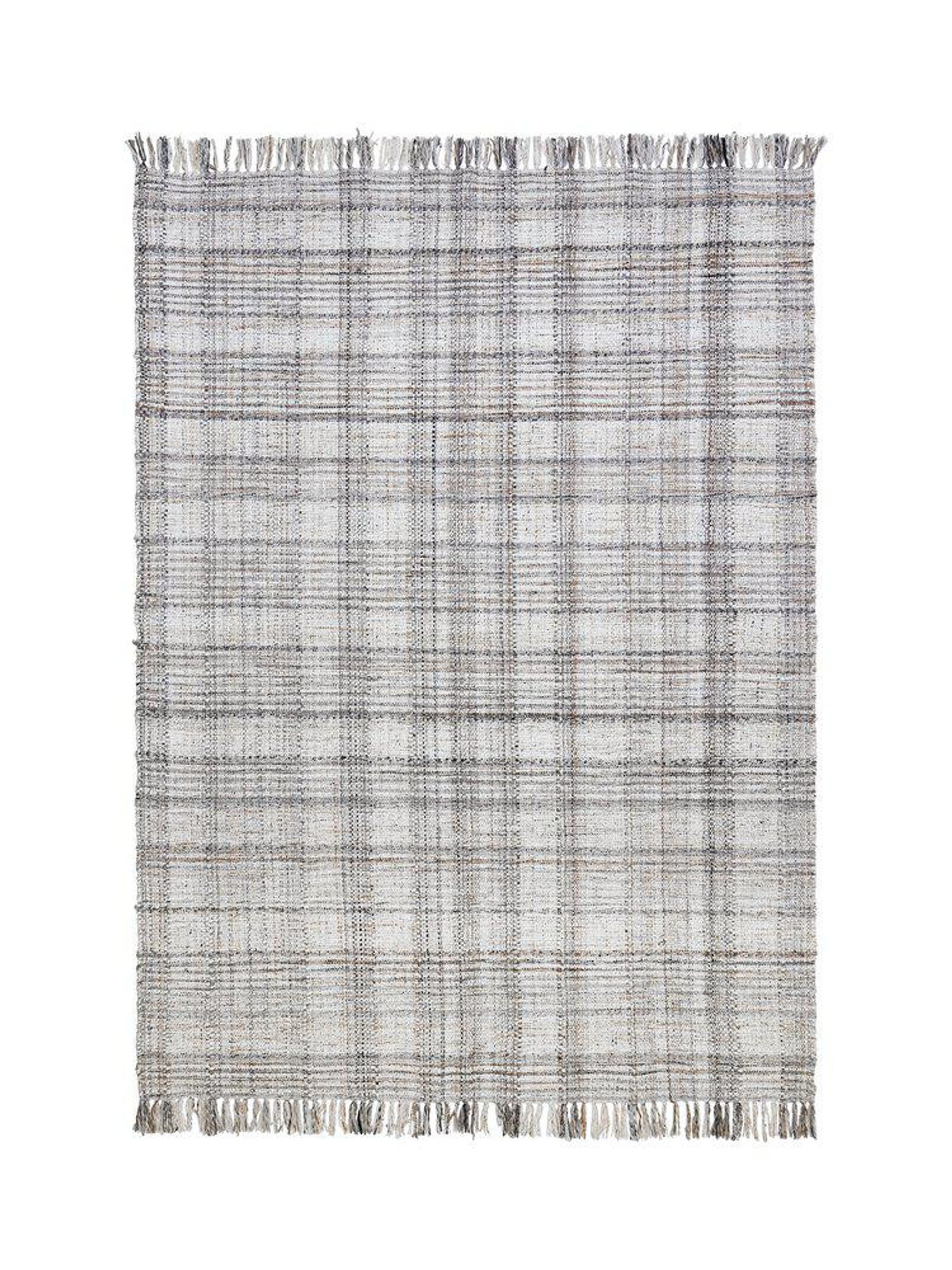 Vändbar beige utomhusmatta 200x300 cm i slätvävd återvunnen PET med tonad rutig sandfinish, lättskött och snabbttorkande. Den passar på din balkong eller altan och funkar som en snygg, praktisk och bra matta som håller länge.
