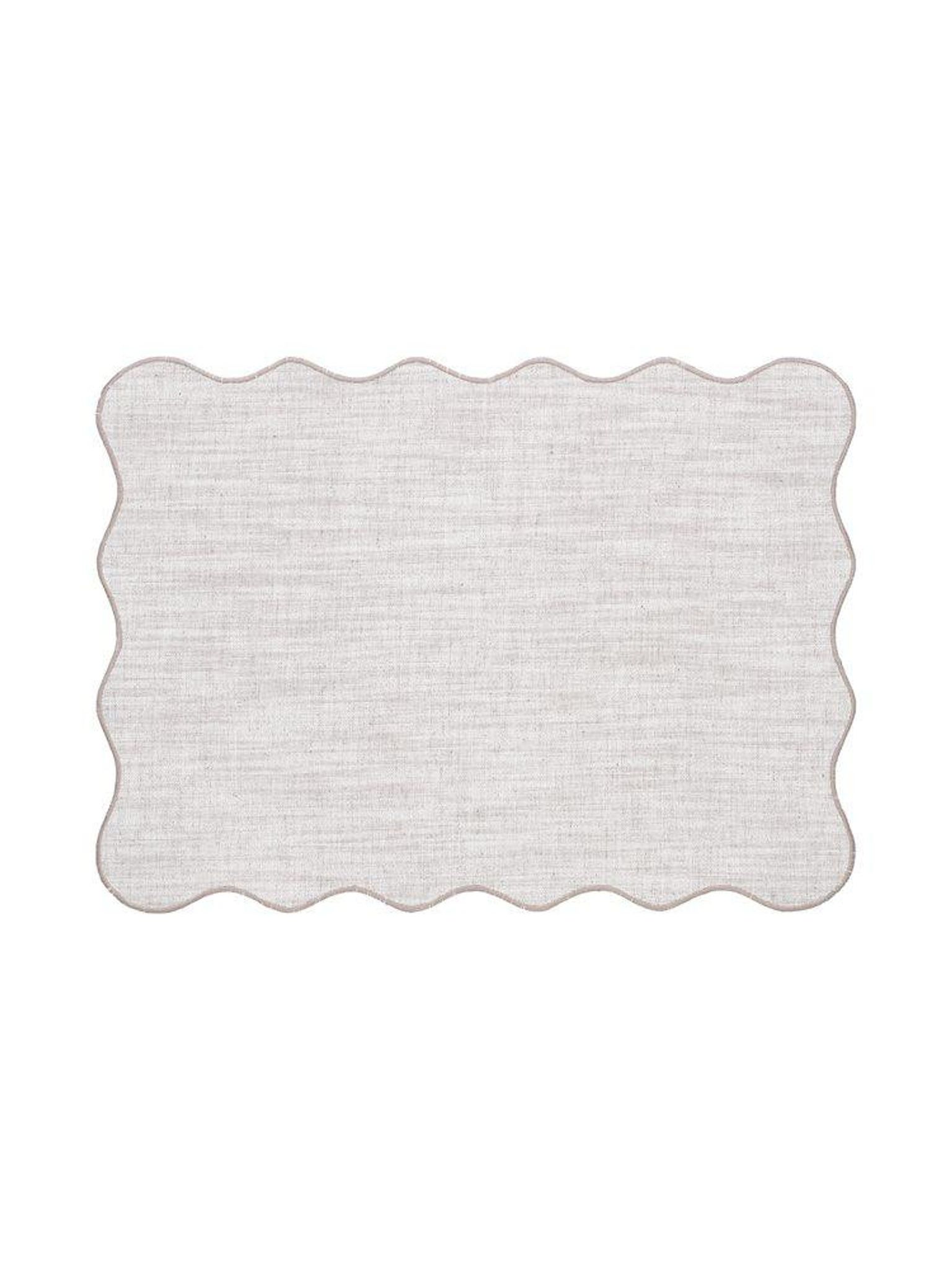 Sabina bordstabletter 35x45 cm i bomull/linnemix, beige med vågig kant, linneliknande känsla och STANDARD 100 by OEKO-TEX® (4-pack). Varje tablett är snygg och praktisk och håller länge, passar ditt vardagsbord och funkar bra vid dukning.