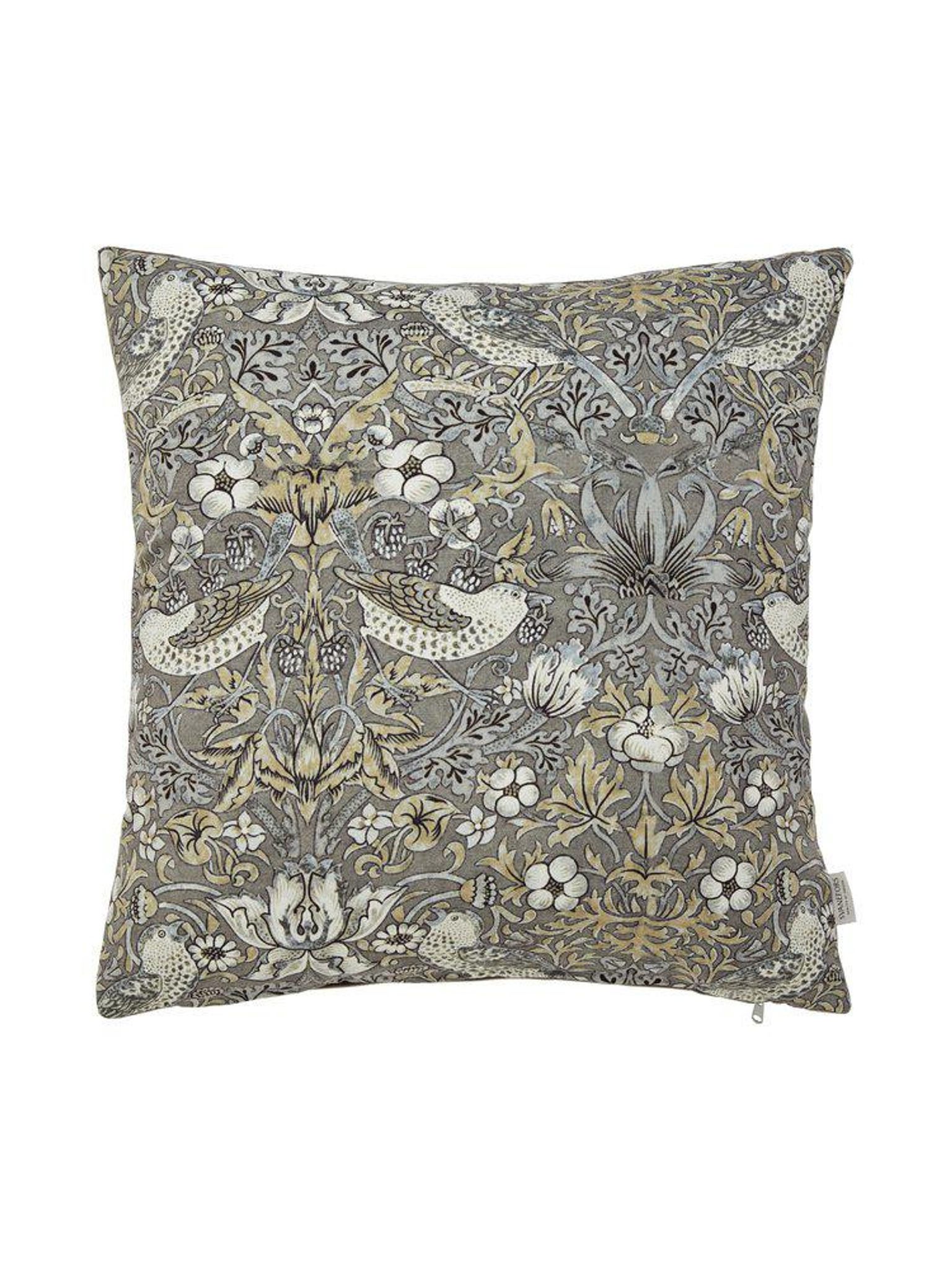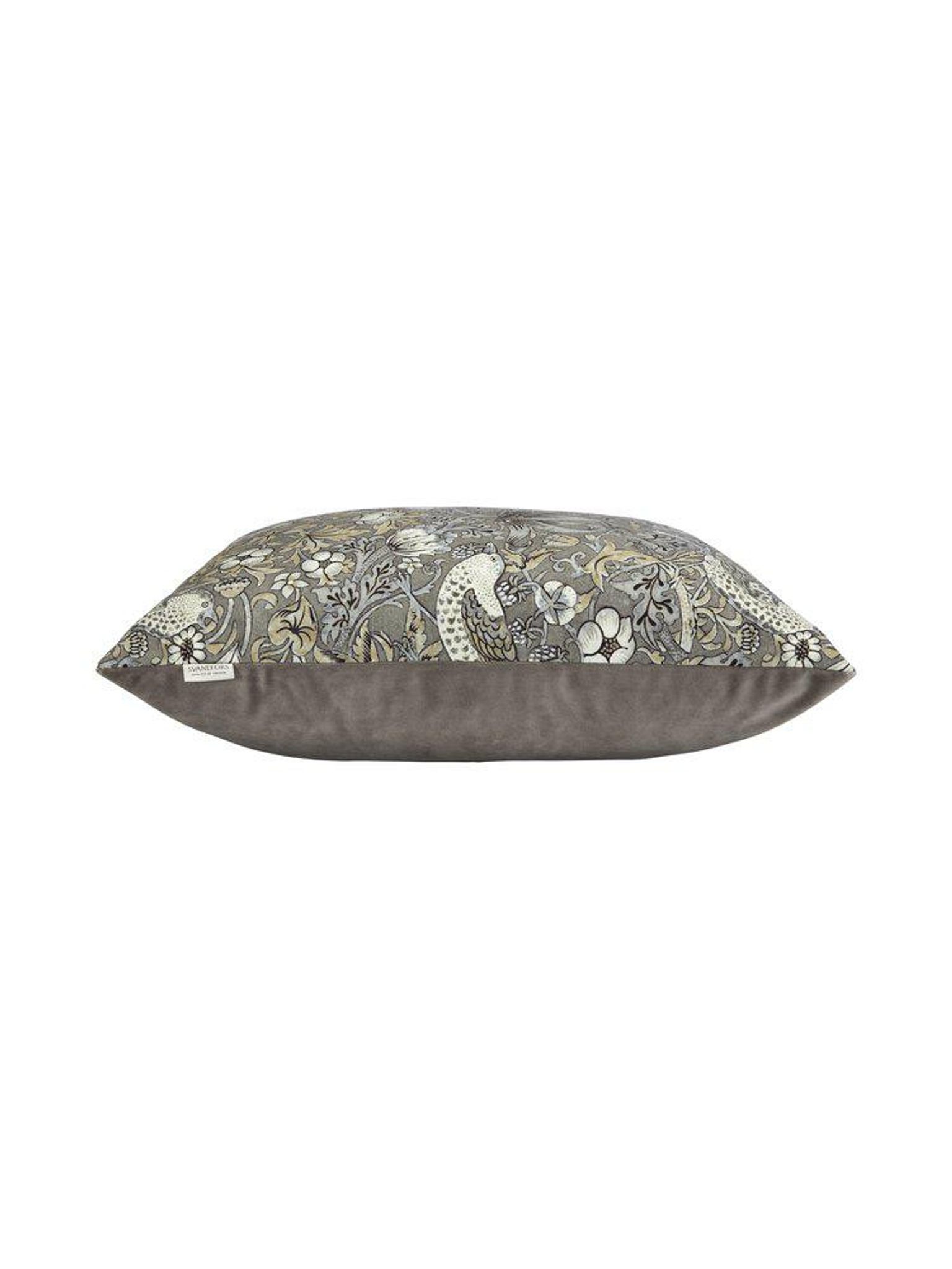 Grå Vilja kuddfodral 45x45 cm med mönstrad, tryckt bomullskänsla fram och matchande sammet på baksidan. Det passar i din soffa eller säng, funkar som snygg, praktisk accent, håller länge och är bra.