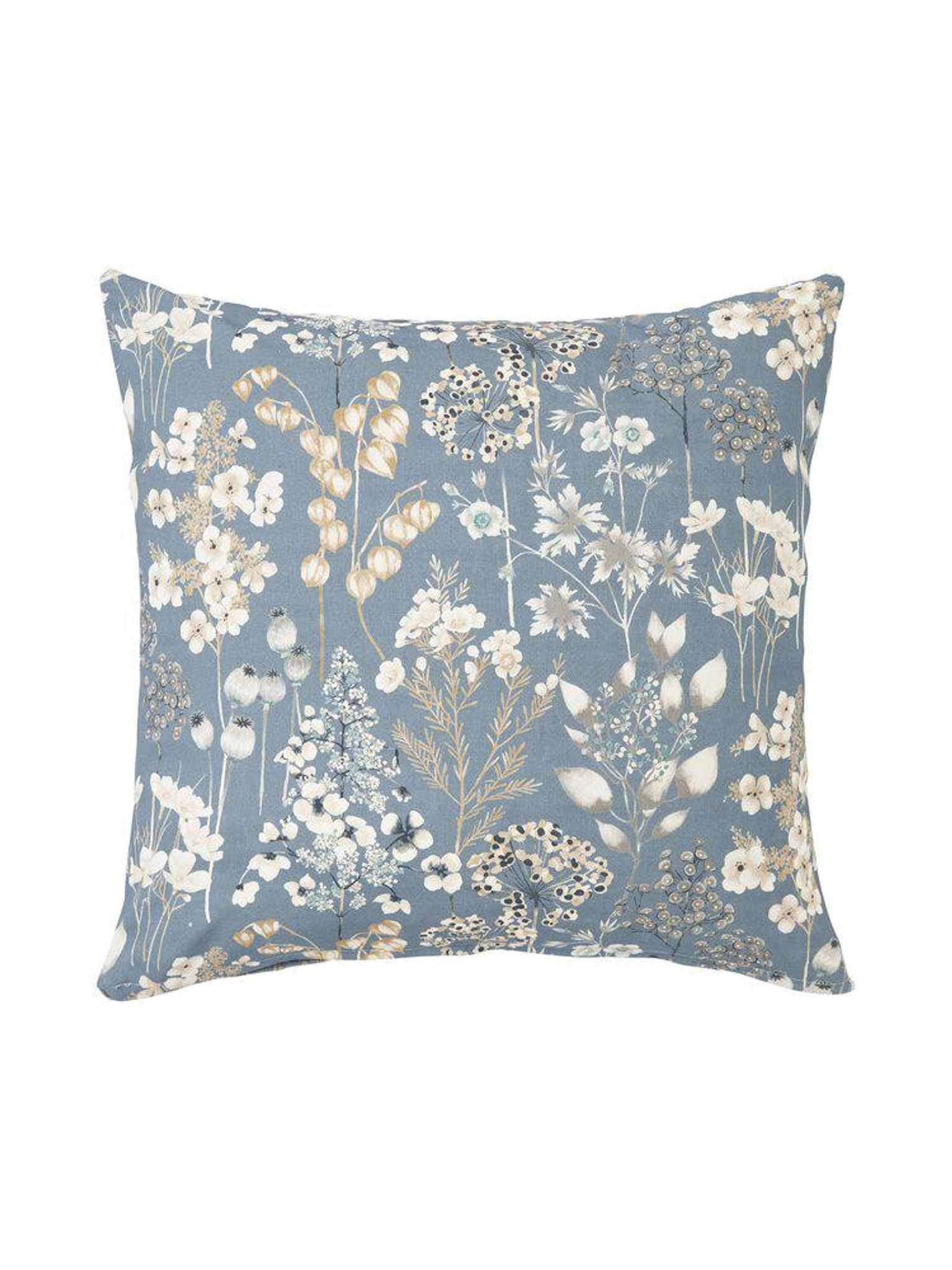 Kuddfodral 45x45 cm i bomull med sammetpipning och blått mönster från Svanefors, med dragkedja. Passar din soffa eller säng, funkar som accentkudde; snygg, praktisk, håller länge och ger en bra detalj.