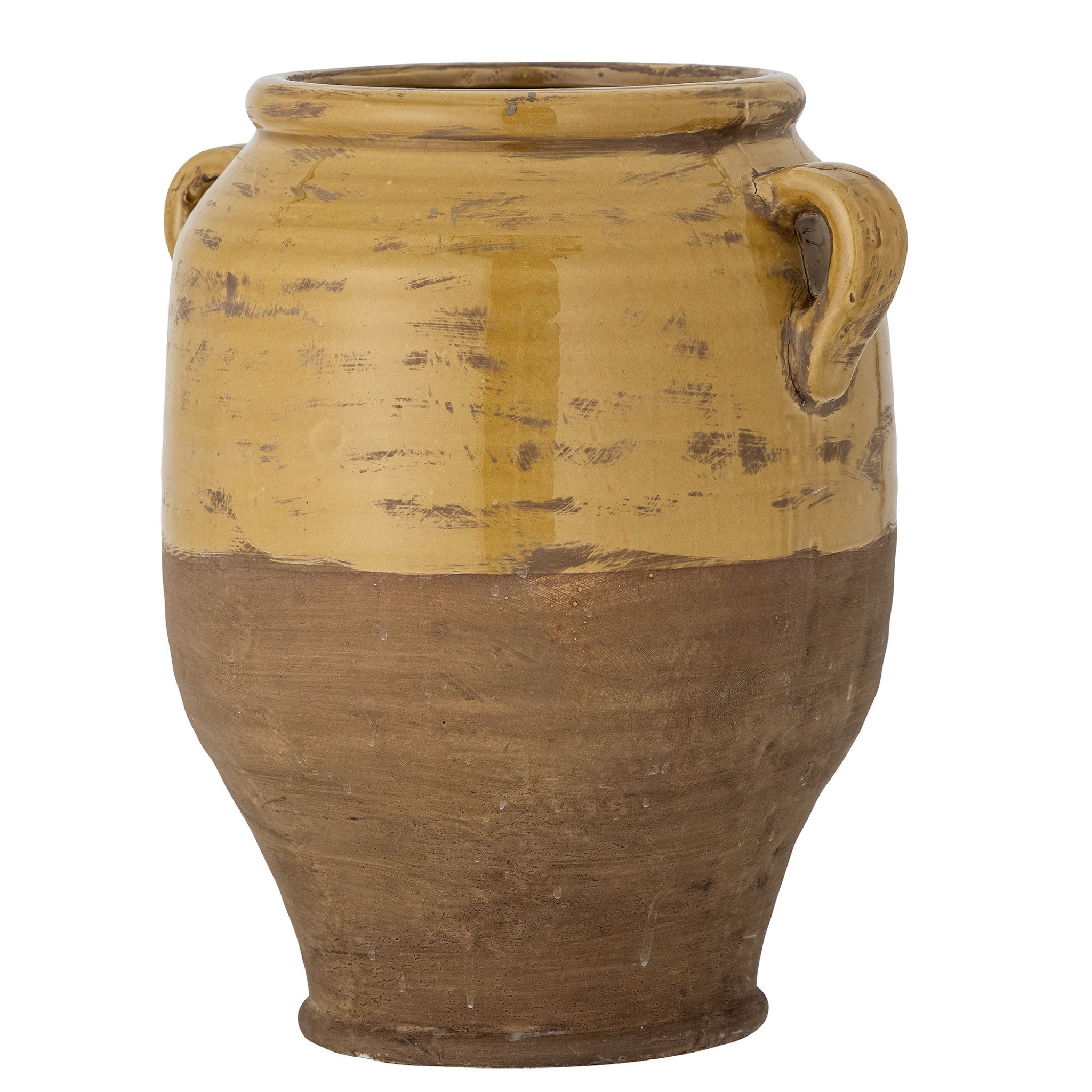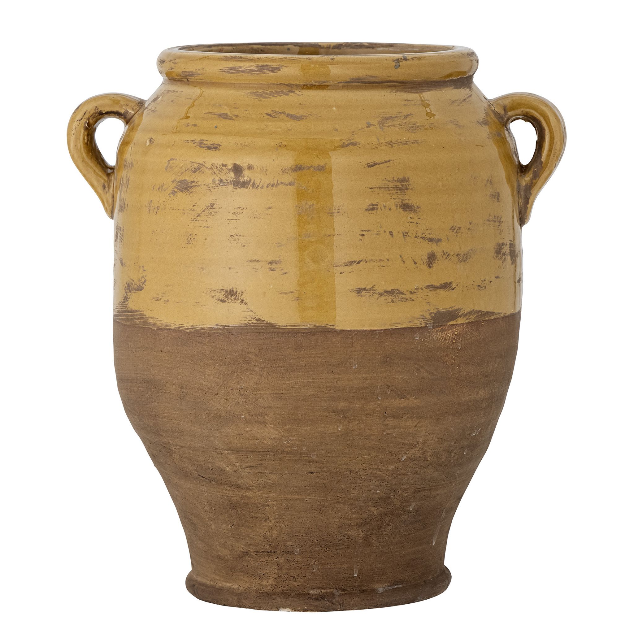 Tao Dekorationsblomkruka Gul Terrakotta från Bloomingville – en stor, dekorativ kruka i terrakotta med varm gul glasyr och två praktiska handtag för enkel placering av stora växter.