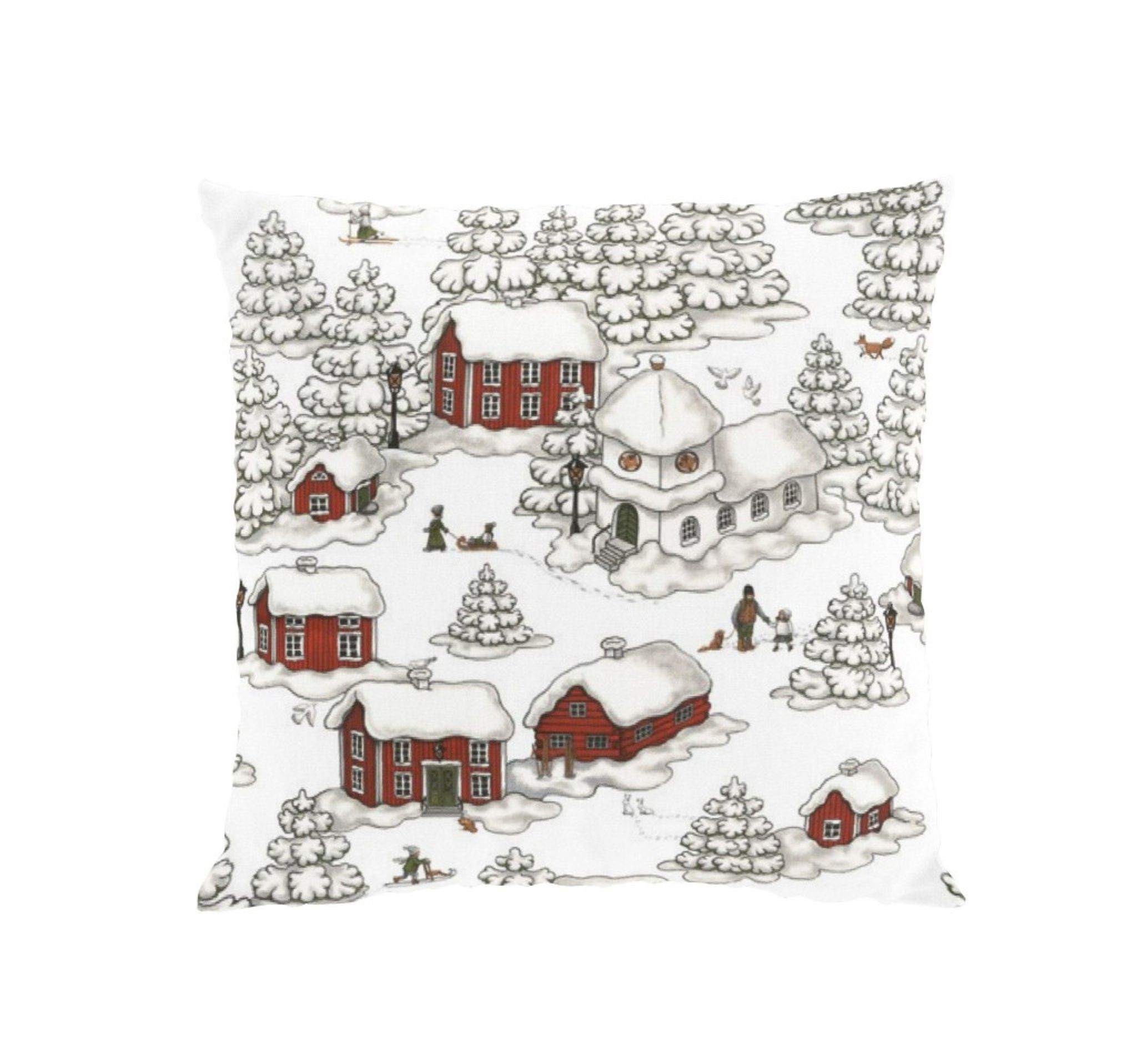 Ge ditt hem en nostalgisk touch med kuddfodralet Timmerbyn i offwhite och röd från Arvidssons Textil. Designat av MiaLotta Arvidsson-Mars, detta kuddfodral är en hyllning till de vackra 1900-talsbyarna, där timrade hus och snötäckta landskap skapar en varm atmosfär.