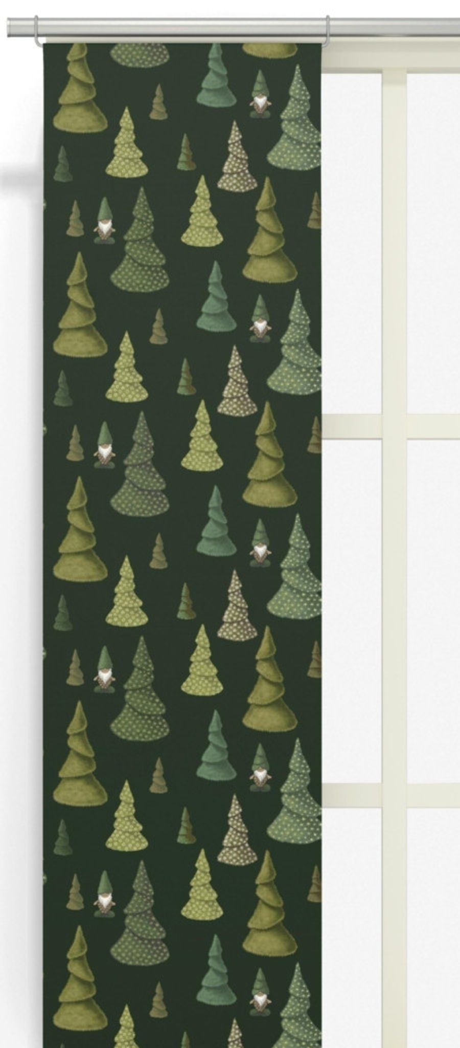 Tomtegömma grön panellängd 2-pack från Arvidssons Textil är två gröna bomullspaneler med ett charmigt tomte- och granmotiv. Perfekta som fönsterpanel eller dekorativ avdelare i vardagsrum och kök. Designad av Mialotta Arvidsson Mars.