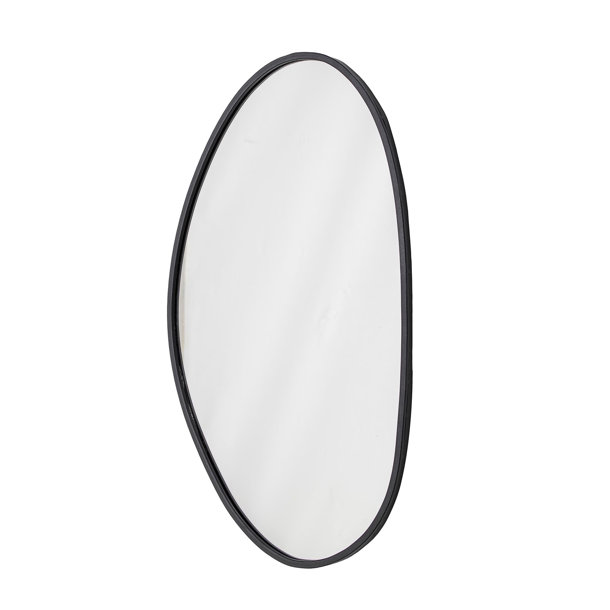 Den svarta järnramen och de sinnliga formerna gör att spegeln både fungerar som dekor och som praktisk spegel för vardagen. Den håller för daglig användning och behåller sitt genomtänkta utseende.
