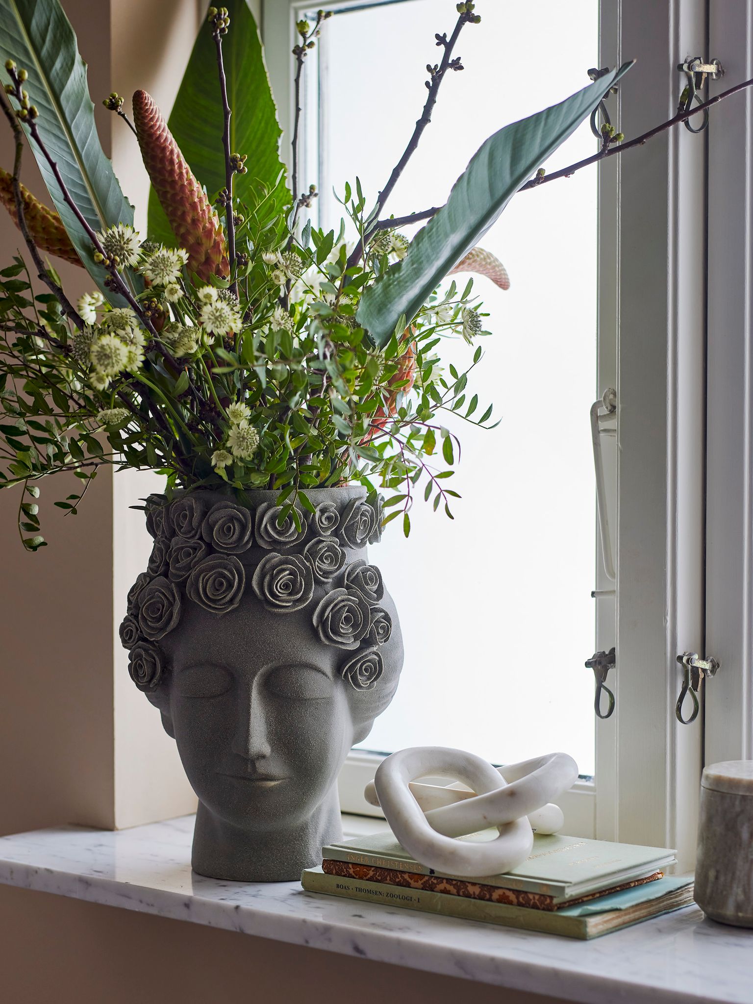 Akira-vasen från Bloomingville är en dekorativ vas i grått stengods som fungerar lika bra som mittpunkt på bordet som dekoration på hyllan eller i fönstret. Den passar i många rum och kompletterar din inredning med en enkel, genomtänkt form.