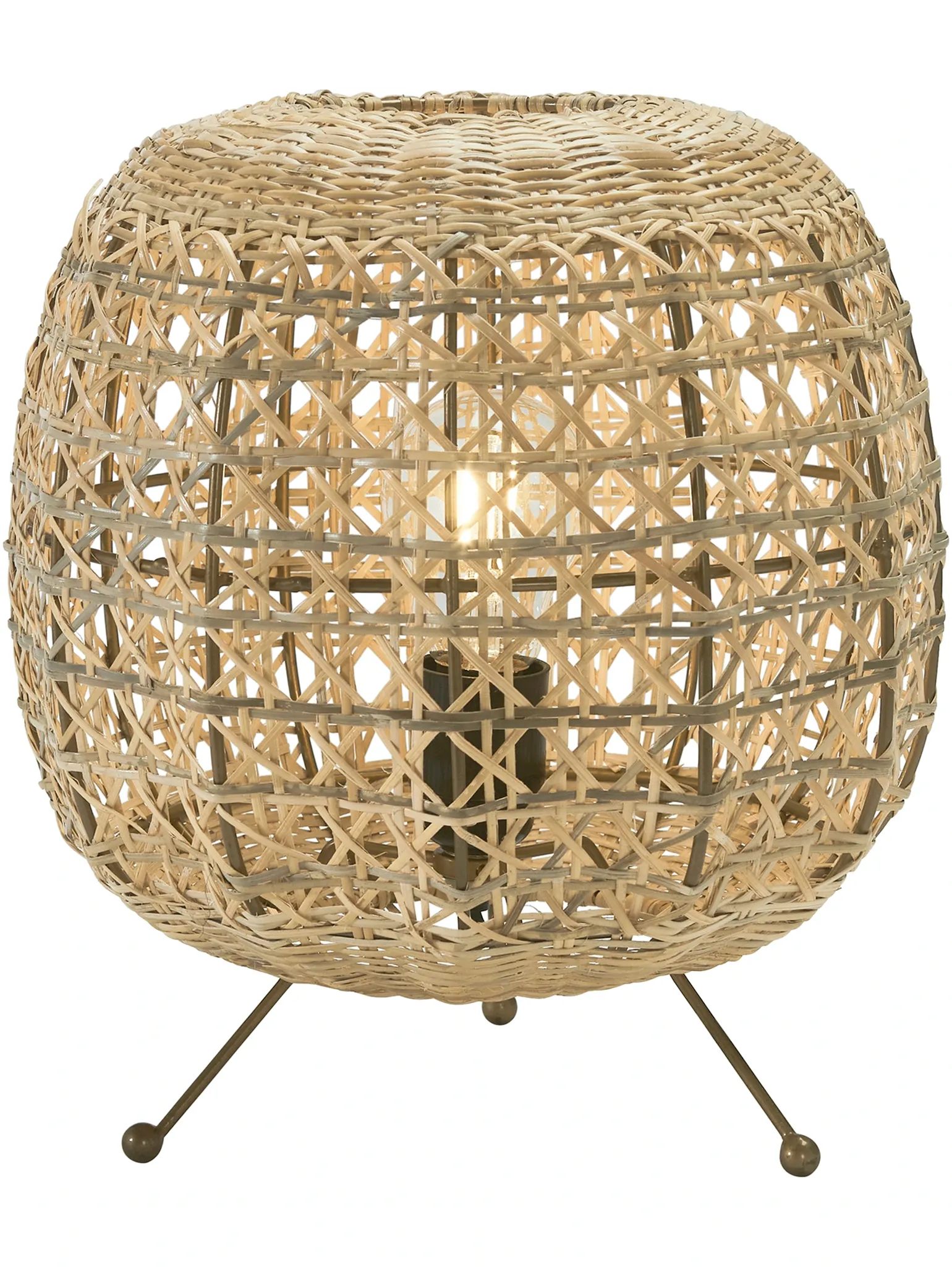 Upptäck PR Home Wickham bordslampa i naturmaterial, perfekt för att skapa en mysig atmosfär i ditt hem. Med en höjd på 30 cm och en bredd samt djup på 25 cm är denna handflätade rottinglampa lätt att placera i alla rum.