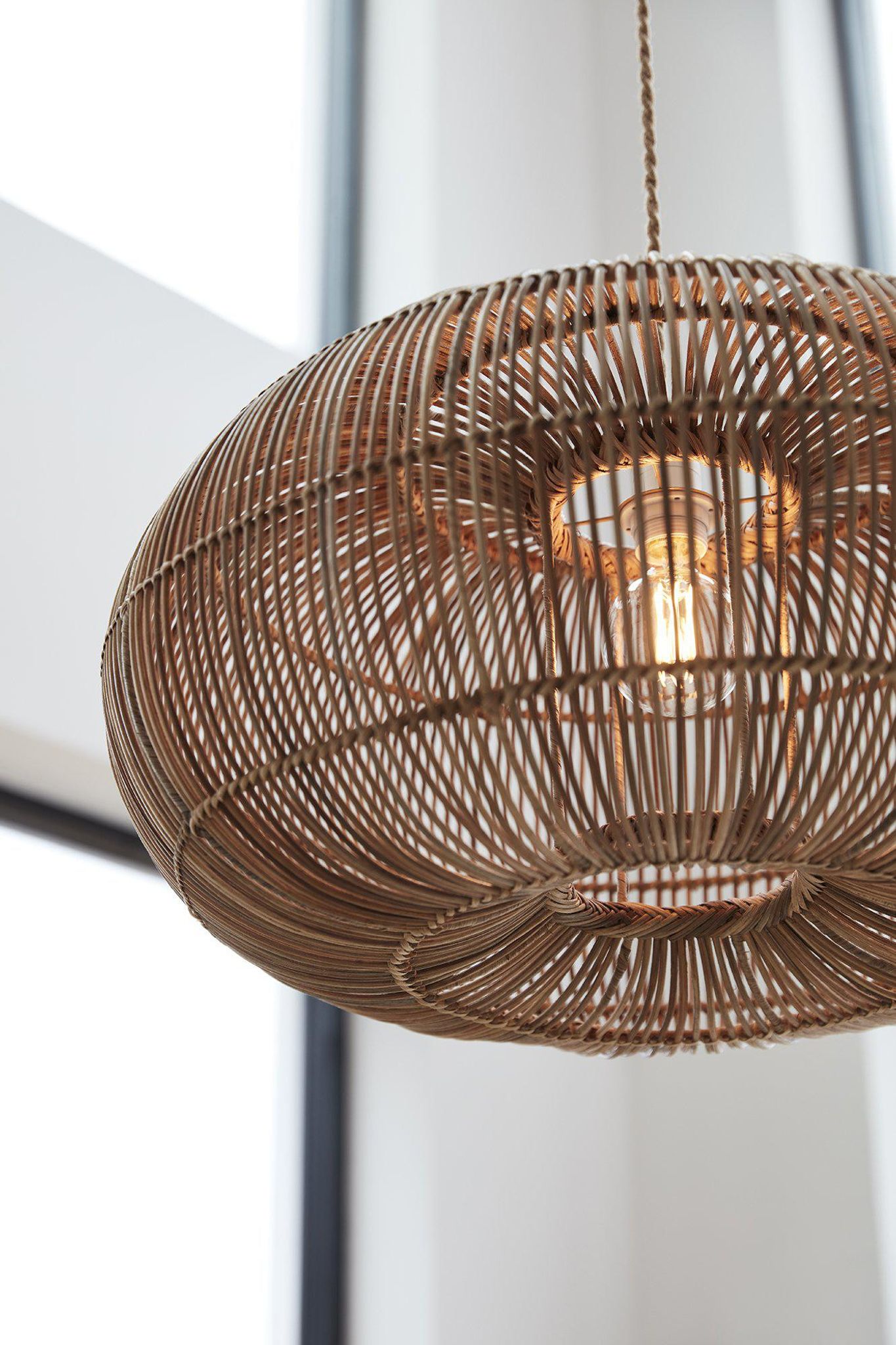- Handflätad skärm av naturmaterial, vilket gör varje lampa unik.